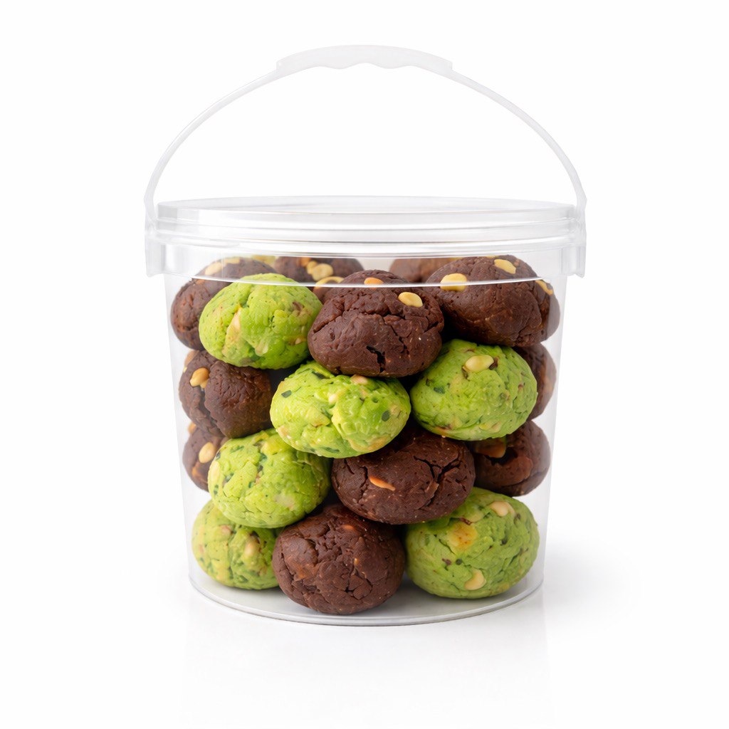 Bote de 36 mini cookies – Dúo Chocolate Ferrero & Pistacho